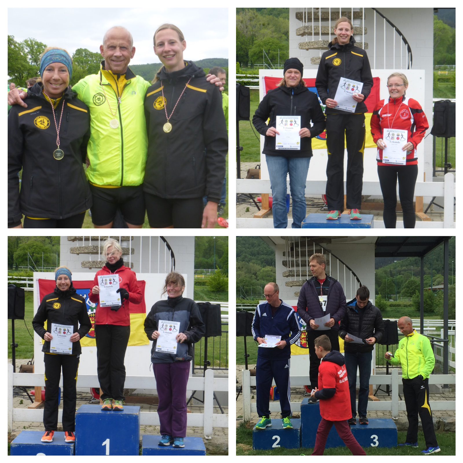 Elisabeth und Jürgen Markfeld sowie Ruth Sydow liefen an diesem Tag die 6,3km Runde. Auf den ersten 4km ging es zunächst stetig bergauf (ca. 200 Höhenmeter) und anschliessend auf sehr steilem, gerölligem Untergrund wieder zurück ins Tal. Die Strecke war stellenweise sehr schwierig zu laufen, so dass einige Läufer immer wieder gehen mussten.