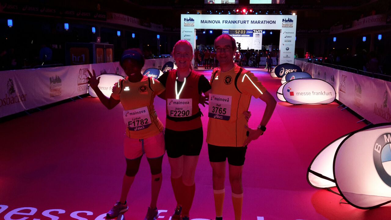 Beim diesjährigen Frankfurt Marathon war der TuS durch Lydiah Schulz-Symon und Ralf Mock vertreten. Beide absolvierten damit ihren 2. Marathon innerhalb von 3 Wochen, für Lydiah war es bereits der 6. Marathon dieses Jahres! Anbetracht dessen ließ sie es etwas langsamer angehen und war als privater Pacemaker für Joana Gierga von Pulvis Fitness aus Harsum aktiv.