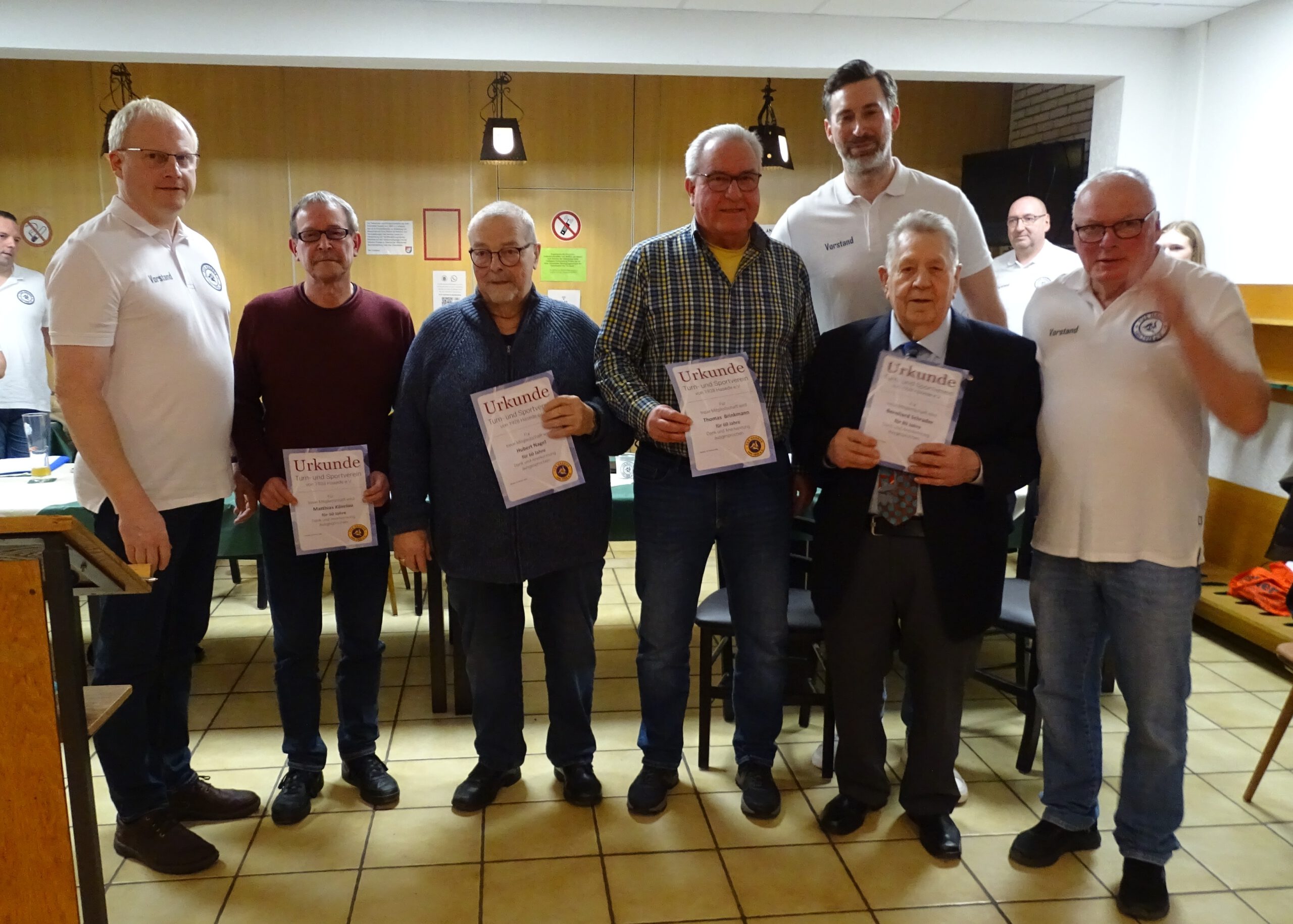 50 Jahre im TuS Hasede sind Josef Eilers sen., Christina Kamper, Matthias Käselau und Karin Wrase. 60 Jahre im TuS sind Thomas Brinkmann, Joachim Engelke und Hubert Nagel.